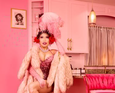 The Pink Speakeasy is an all pink apartment rental venue located in West New York, New Jersey. Styled after a retired showgirl's apartment, our location emulates pink maximalist vintage Hollywood glamour that honor the fabulous legends that came before us.